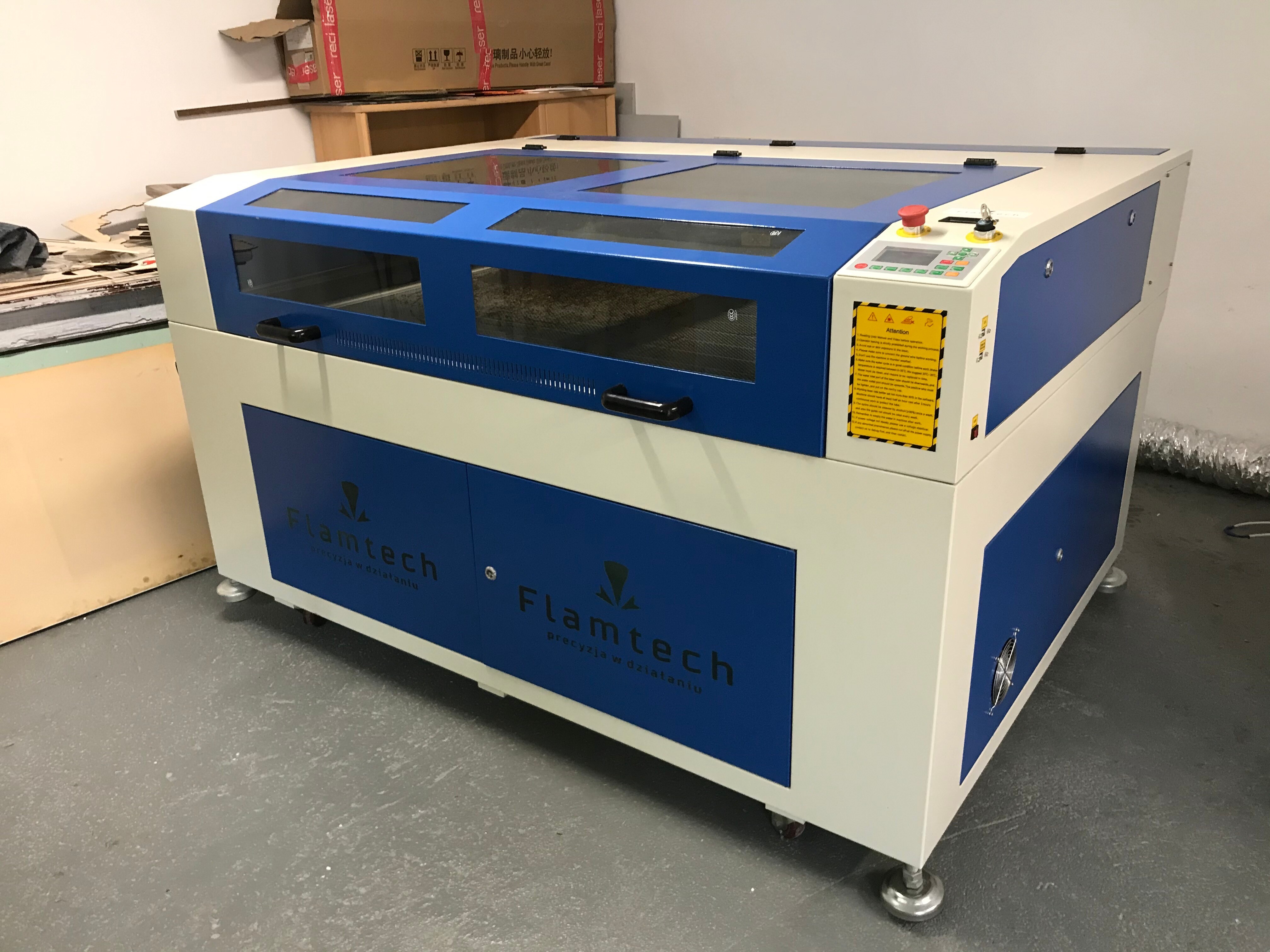 Laser zawiera w zestawie ruchomy stół, który jest wymienny na plaster miodu lub stół nożowy. Mocna konstrukcja pozwala na łatwe odbieranie gotowych detali. Maszyna także posiada zabezpieczenie, które nie pozwoli na jej pracę gdy wszystkie elementy maszyny nie są prawidłowo podłączone lub przez pomyłkę odłączone. Dzięki temu w żaden niekontrolowany sposób nie uszkodzimy urządzenia.
